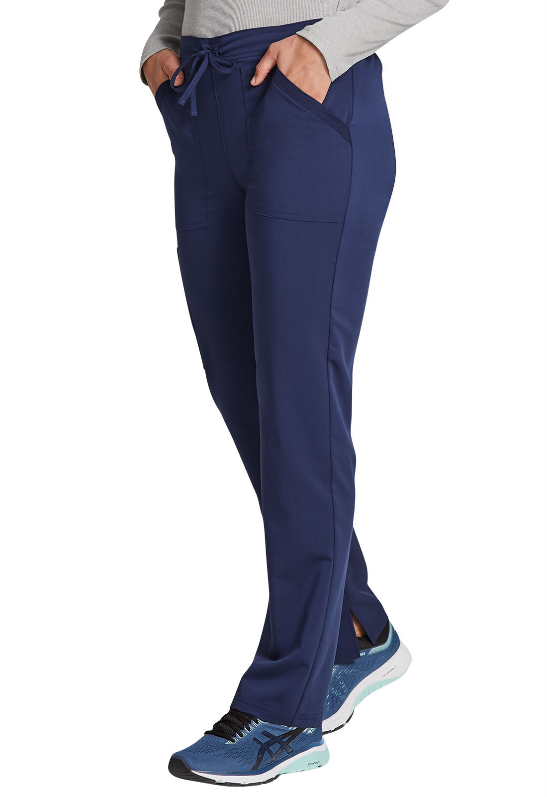 This Contemporary fit mid rise pant has a elastic encased waistband with self drawstring. There are four pockets in total: two front patch pockets, a cargo pocket and one back patch pocket. Side vents complete the look. Tapered leg, 15" opening. Inseam length: 30 1/2"