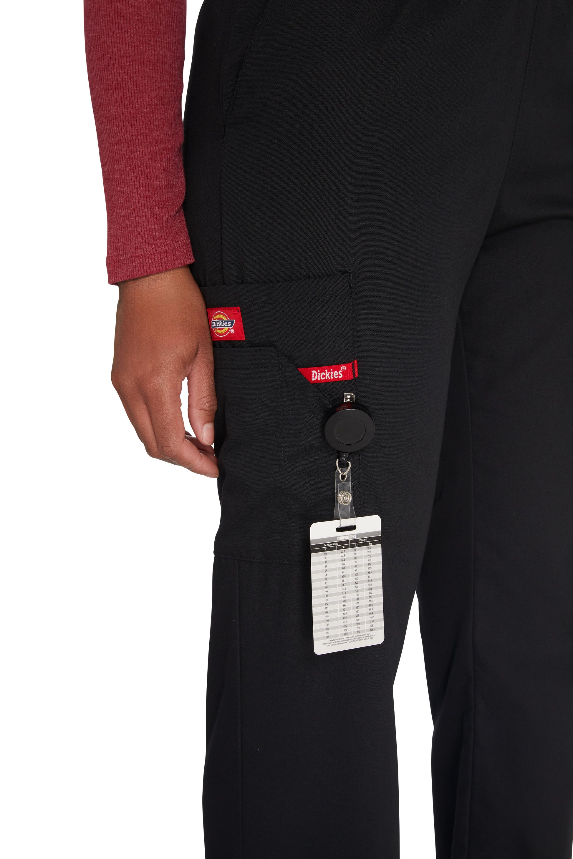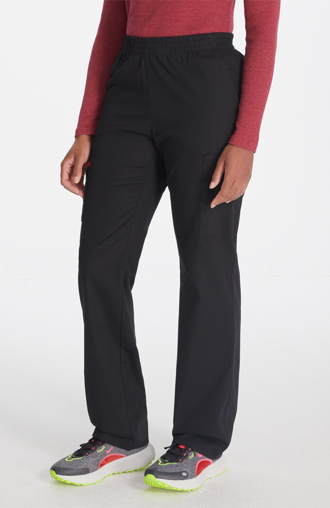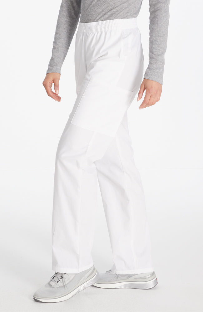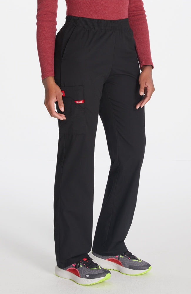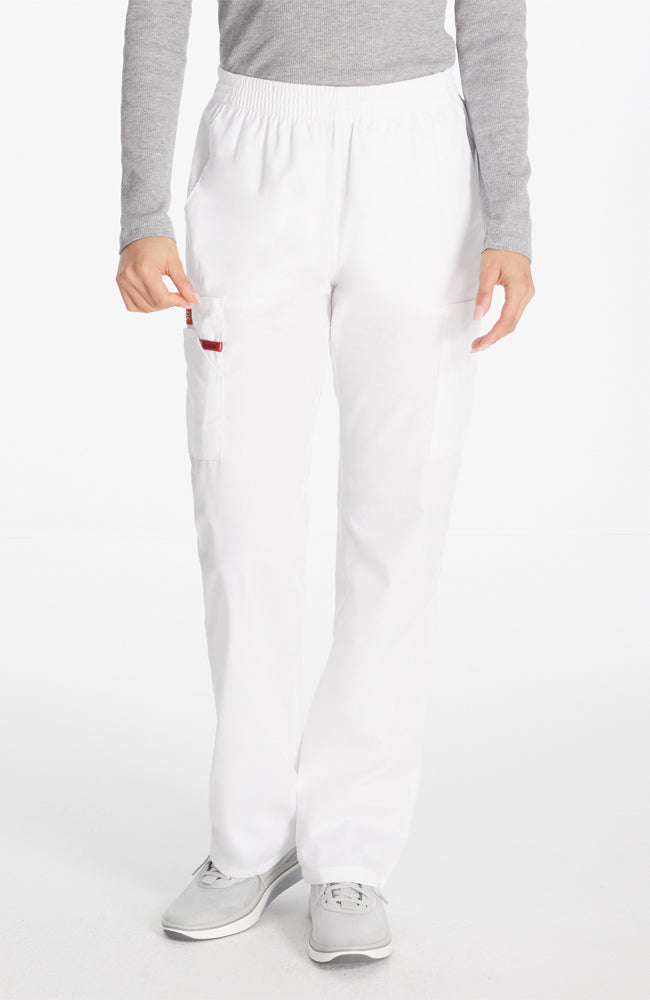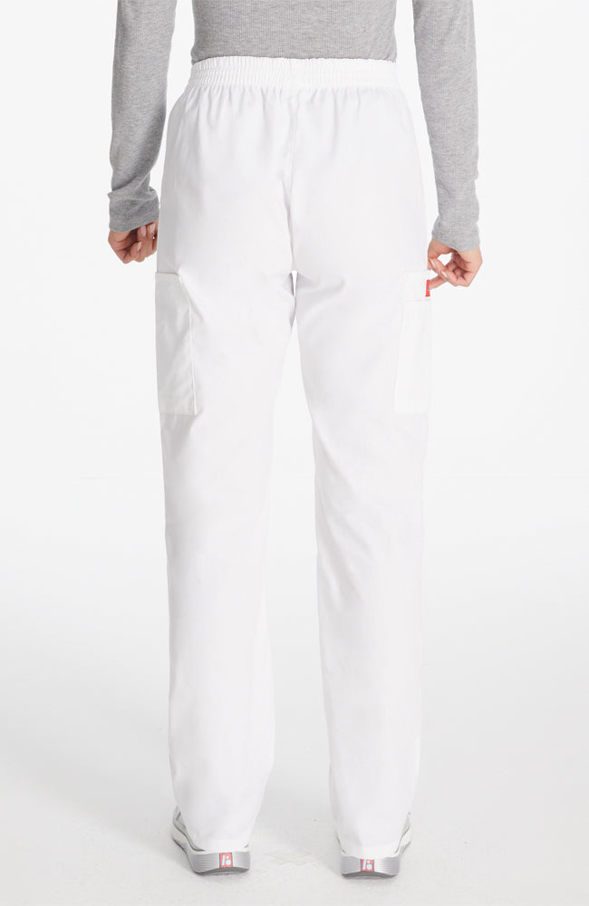 A Modern Classic fit, natural rise, tapered leg, pull-on pant features an all around elastic waistband with a Dickies logo twill tape on the inside back waistband and has an instrument loop on the right cargo pocket. Also featured are front angled pockets and cargo pockets with a stretch Red knit interior pocket (White knit pocket on White). Inseam: 30 1/2".